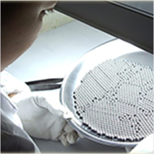 高炭素クロム軸受鋼材を使用し、主にボールベアリング用としてあらゆる産業機械、輸送機械などの回転部分に使用されます。材料はJIS G 4805高炭素クロム軸受鋼材(SUJ2)、鋼球の企画はJIS B1501に準じます。